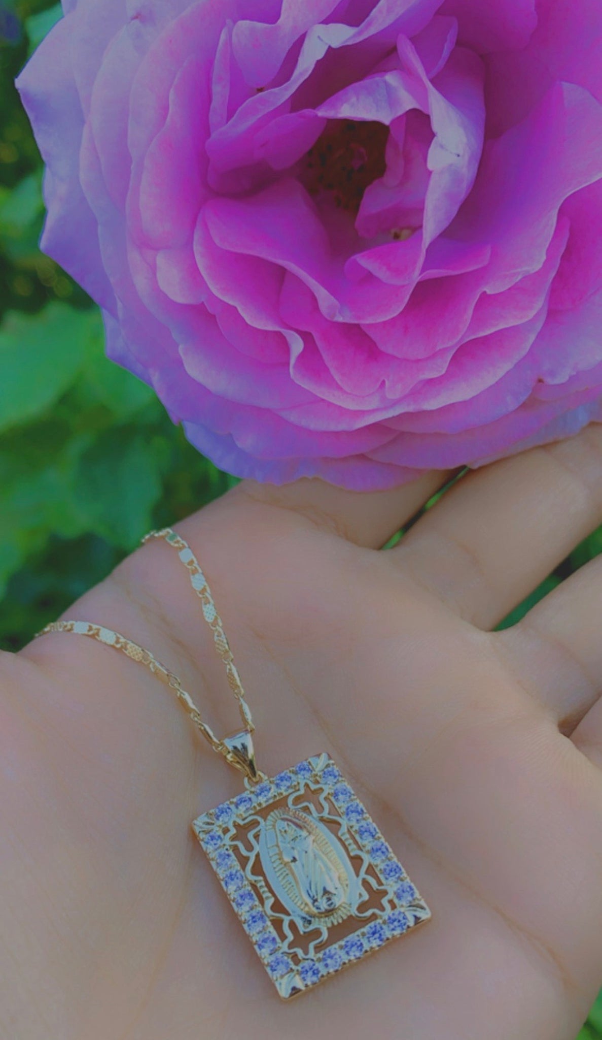 18k Virgin Mary gold dipped necklace + pendant.
